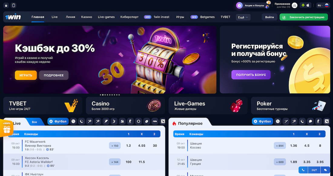 Слоты – это игровые автоматы, механика которых основана на вращении барабанов. В 1вин они составляют отдельную категорию, пользующуюся особой популярностью среди клиентов.